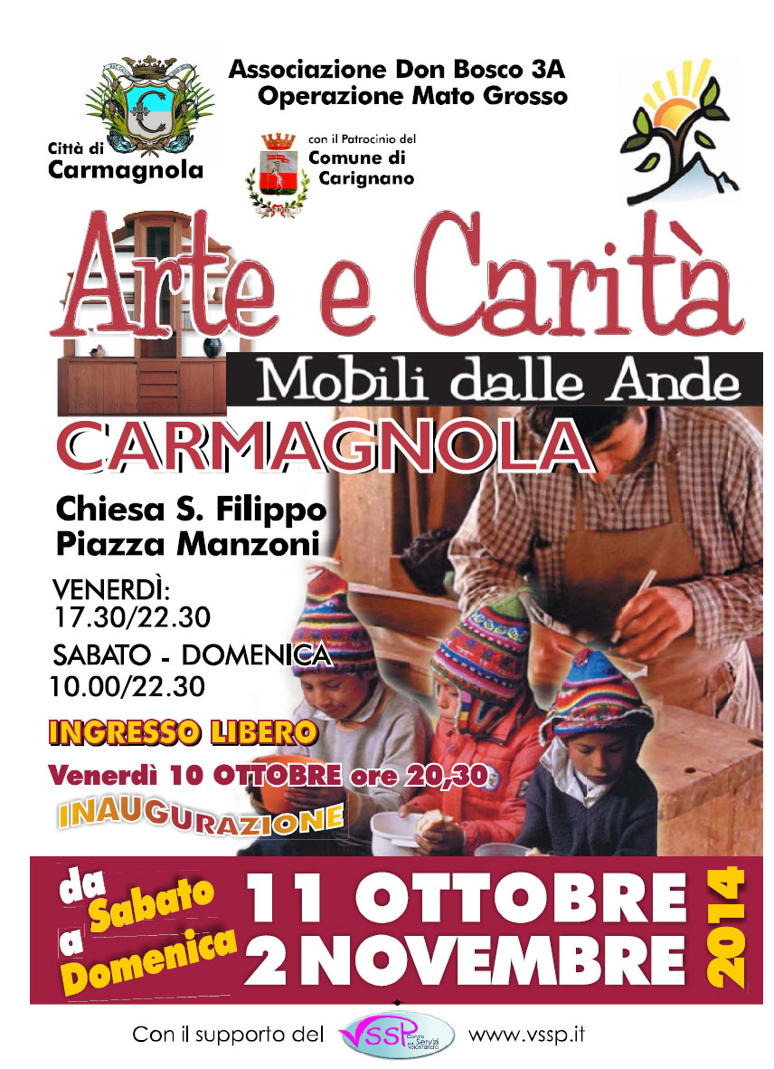 Arte e Carità Archivio calendario News 11 Ottobre 20149 Ottobre 2014 Dal 11 Ottobre al 2 Novembre 2014, la chiesa di San Filippo a Carmagnola, ospiterà una mostra-mercato di mobili e opere d’arte di scultura e intaglio in legno e pietra, provenienti dalle missioni dell’Operazione Mato Grosso in Perù. La storia di questi mobili ha inizio nel 1979, quando Padre Ugo de Censi, missionario Salesiano e parroco di Chacas un paese a 3500 Mt. sulle Ande Peruane, per dare una risposta concreta ai bisogni delle persone più povere della sua parrocchia, decide di aprire una scuola di falegnameria ed intaglio. Alla scuola vengono accolti i ragazzi più poveri fra i poveri, hanno dai 7 ai 13 anni, studiano per 5 anni il lavoro del legno, l’arte dell’intaglio e della scultura, ma soprattutto vengono educati all’amore verso la propria terra e verso le persone più povere e più bisognose di aiuto. Dal 1979 ad oggi sono state aperte molte altre scuole di falegnamerie ed intaglio nelle missioni dell’Operazione Mato Grosso, ed i ragazzi terminati gli studi, hanno dato vita alla Famiglia-Cooperativa Artesanal Don Bosco de Chacas. Oggi la famiglia-cooperativa accoglie più di 1000 ragazzi e il loro numero aumenta ogni anno. In Italia per vendere i mobili realizzati dai ragazzi della Famiglia-Cooperativa Artesanal de Chacas, è nata l’Associazione Don Bosco 3A. Il compito di questa associazione, che si basa unicamente sul lavoro gratuito di molti amici volontari dell’Operazione Mato Grosso, è quello di organizzare mostre di mobili come quella che si terrà a Carmagnola. La storia dei mobili che verranno esposti parte quindi da molto lontano, dalle Ande Peruane. Ogni mobile è realizzato in legno massiccio e pregiato, ed è opera di un solo ragazzo della cooperativa. I mobili raggiungono Lima dopo ore di strade sterrate attraverso passi a 5000 mt e vengono imbarcati per l’Italia. Sono mobili quindi un po’ speciali, vengono da lontano e parlano di amore e di carità. Nessuno infatti potrà guadagnare niente dalla vendita dei mobili in Italia. Tutto il ricavato tornerà nelle missioni del Perù, servirà a pagare il lavoro dei ragazzi della cooperativa e a sostenere opere a favore delle persone più povere. Chi compra uno di questi mobili ha la certezza di portare in casa un’opera d’arte, ma soprattutto di aver compiuto un gesto di amore. Oltre ai mobili e alle sculture, saranno esposti anche maglioni, tappeti e ricami provenienti dalla Famiglie-Cooperative femminili. La mostra-mercato dei mobili e delle sculture realizzati dai ragazzi della Famiglia-Cooperativa Artesanal Don Bosco de Chacas rimarrà aperta presso la chiesa di San Filippo a Carmagnola (in piazza Manzoni 10, adiacente al municipio), dal 11 Ottobre al 2 Novembre 2014 nei seguenti orari: 17.30 – 22.30 Venerdì 10.00 – 22.30 Sabato e Domenica Inaugurazione della mostra il giorno Venerdì 10 Ottobre alle ore 20.30. L’entrata alla mostra è libera. Per informazioni: Associazione Don Bosco 3A – www.donbosco3a.it Marco e Daniela: 011 9693007, 340 4727540, marco.valentino@teletu.it Alvaro e Claudia: 011 9699649, 366 4179011 VERSO L’ALTO, VERSO L’ALTRO LE ANDE TUTTE D’UN FIATO VENERDI 17 OTTOBRE – CHIESA DI SAN FILIPPO, CARMAGNOLA Un evento speciale è previsto quest’anno all’interno della Mostra dei mobili andini: una serata dedicata alla montagna e agli appassionati di ascensioni extraeuropee e non solo. Giancarlo Sardini, volontario dell’Operazione Mato Grosso, e Valerio Bertoglio guida alpina e collaboratore della Scuola de Guias en Los Andes in Perù, illustreranno il progetto nato in Perù per favorire un turismo educativo e solidale sulle Ande. Gli antichi sentieri che uniscono le innumerevoli vallate, le grandi montagne che fanno da corollario ai villaggi, l’antica viabilità incaica ancora percorribile in mountain bike tra le rovine archeologiche, sono diventati il teatro del lavoro di molti ragazzi diventati guide grazie alla scuola per guide sorta agli inizi degli anni 90. Con la loro collaborazione è possibile organizzare trekking o ascensioni sulle vette più belle delle Ande Peruviane. (Per info http://www.donbosco6000.net/ita/chisiamo-it.html ) Durante la serata si parlerà anche dei rifugi alpini dell’OMG in Italia costruiti e gestiti dai volontari. Share on Facebook Share Share on TwitterTweet Send email Mail Print Print