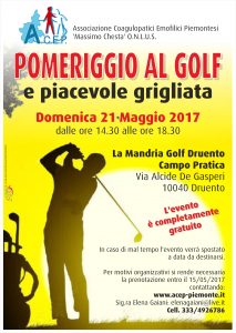 L’Associazione A.C.E.P organizza una piacevole giornata in compagnia con un pomeriggio al golf e gigliata a seguire. L’appuntamento è domenica 21 maggio dalle ore 14.30 a La Mandria Golf Druento in via Alcide de Gasperi (Druento).