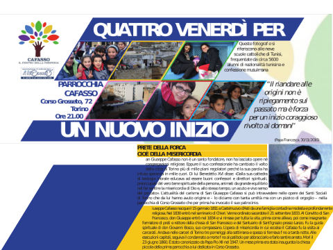 « Tutti gli Eventi Questo evento è passato. Quattro venerdì per un nuovo inizio al Cafasso: Rifare il popolo a Dio. 26 Maggio 2017 h 21:00 - 22:30 « SOLIDARTE: l’asta d’arte di beneficenza organizzata da OAF-I Una serata dedicata al racconto di 50 anni di missione in Mozambico » In occasione dei 70 anni della Parrocchia San Giuseppe Cafasso si organizzano una serie di appuntamenti culturali per il mese di Maggio dal titolo “Quattro venerdì per un nuovo inizio”. L’intento è di festeggiare insieme i 70 anni della Chiesa Piccola, i 60 anni dell’apertura della Scuola Cafasso e 50 anni dall’arrivo delle Suore di Carità dell’Assunzione. “Rifare un popolo a Dio” è il tema dell’incontro del 26 maggio: un’occasione per presentare l’opera delle Suore di Carità dell’Assunzione che svolgono un prezioso aiuto per le famiglie del quartiere da diversi anni. Interverranno Mariella Filiberti, Responsabile della Comunità di Madrid, e Donata Motta, Responsabile della Comunità di Torino. In apertura: Elide Tisi, Vicepresidente delegato al Welfare ANCI Piemonte. Dal 21 al 28 maggio sarà possibile visitare la mostra sulle Suore di Carità dell’Assuzione dal titolo “La vita per l’opera di un Altro” (Coordinamento Giuseppe Feyles e Ubaldo Casotto) presso la Chiesa piccola in corso Grosseto, 72. Tutti gli incontri si svolgeranno alle 21 in corso Grosseto, 72. Gli orari per le prenotazioni delle mostre sono: da lunedì a venerdì: 12.00 – 14.00 e 17.30 – 19.30 (prenotazioni per i gruppi). Sabato e domenica: 10.00 – 12.00 (prenotazione per i gruppi) e 14.00 – 18.00 (prenotazione per i gruppi). Per prenotazioni e informazioni: 3355208579. Dal 15/05/2017 dalle 10.00 alle 12.30, dal lunedì al sabato. + Google Calendar+ Esporta in iCal Dettagli Data: 26 Maggio 2017 Ora: 21:00 - 22:30 Categorie Evento: Calendario, Eventi in primo piano Luogo Oratorio San Giuseppe Cafasso corso Grosseto 72 Torino, Italia + Google Maps
