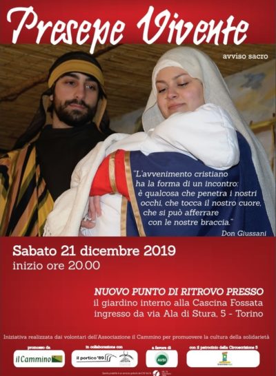 « Tutti gli Eventi Questo evento è passato. Torna Il “Presepe Vivente”, sacra rappresentazione del Natale dell’associazione Il Cammino 21 Dicembre 2019 h 20:00 - 22:00 « Portobello in Diapsi Concerto Gospel di raccolta fondi a favore di Outsider Odv » Il “Presepe Vivente” è la sacra rappresentazione del Natale che l’associazione Il Cammino propone ormai da oltre 30 anni. E’ un gesto per tutti che aiuta a riscoprire le proprie tradizioni e favorisce l’integrazione e la cultura della solidarietà. L’evento, organizzato in collaborazione con le Suore di Carità dell’Assunzione e la Cooperativa Il Portico ’89, vede come protagonisti i ragazzi che frequentano il “Centro di Aiuto allo Studio” di Via Palli 31, i loro educatori e i volontari. Il ritrovo sarà sabato 21 dicembre alle ore 20 presso il giardino interno alla Cascina Fossata, con ingresso da Via Ala di Stura 5 a Torino. Da più di quarant’anni l’Associazione di volontariato Il Cammino opera nel territorio della quinta circoscrizione del Comune di Torino, in particolare in Borgo Vittoria, con iniziative, strumenti e progetti a sostegno del bisogno di famiglie, minori, adulti, anziani e disabili che attraversano momenti di difficoltà transitori o permanenti. + Google Calendar+ Esporta in iCal Dettagli Data: 21 Dicembre 2019 Ora: 20:00 - 22:00 Categoria Evento: Calendario Organizzatore Associazione Il Cammino Telefono: 011 229 6441 Sito web: http://www.associazioneilcammino.it Luogo Cascina Fossata via Ala di Stura, 5 Torino, Italia + Google Maps